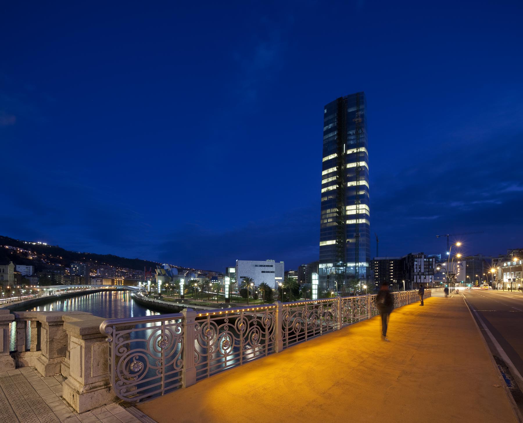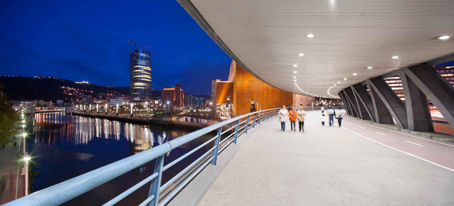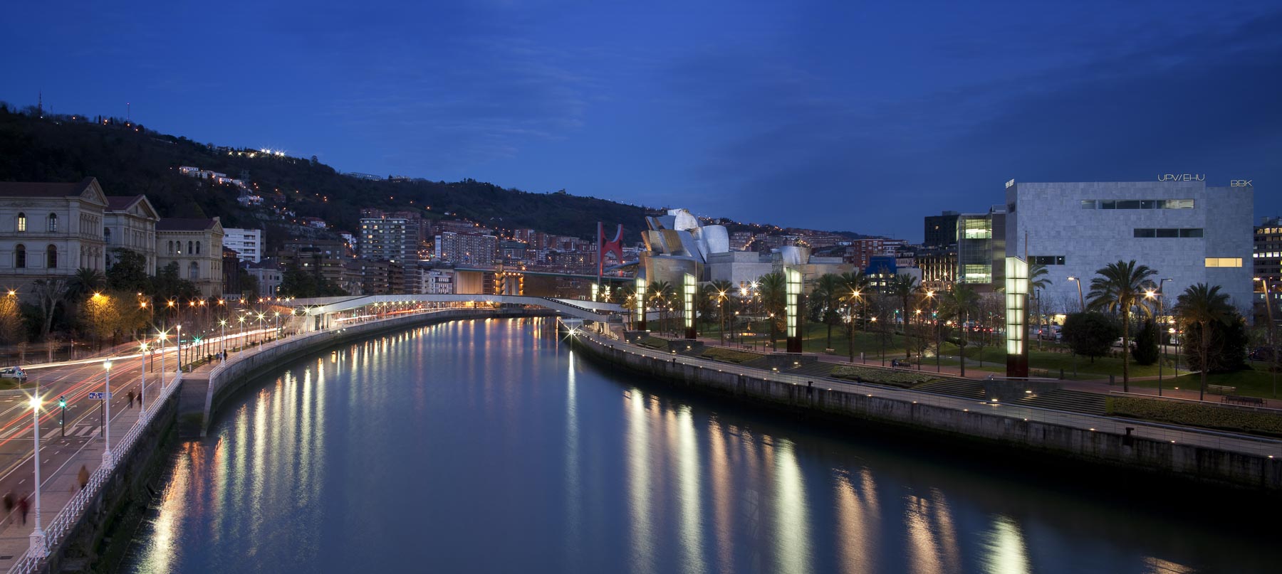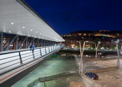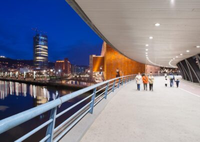 Sujet: Pont et passerelle sur la rivière Nervion, abords du musée Guggenheim
