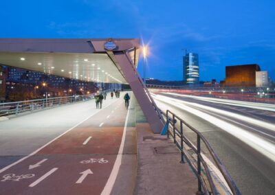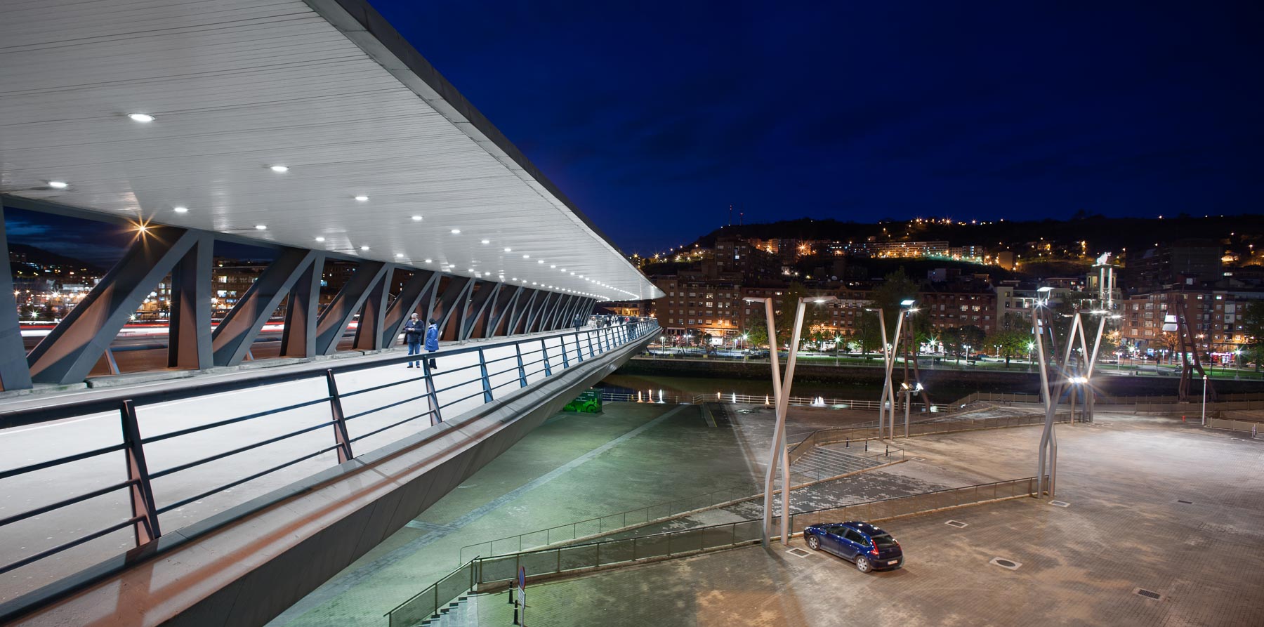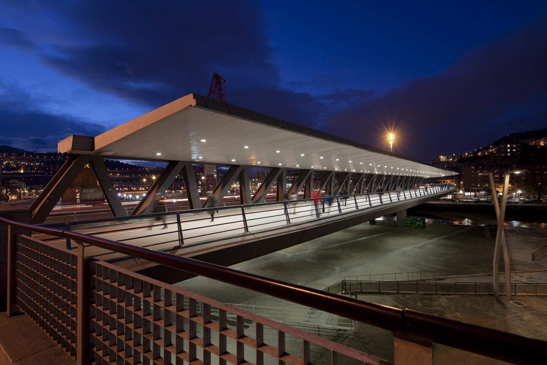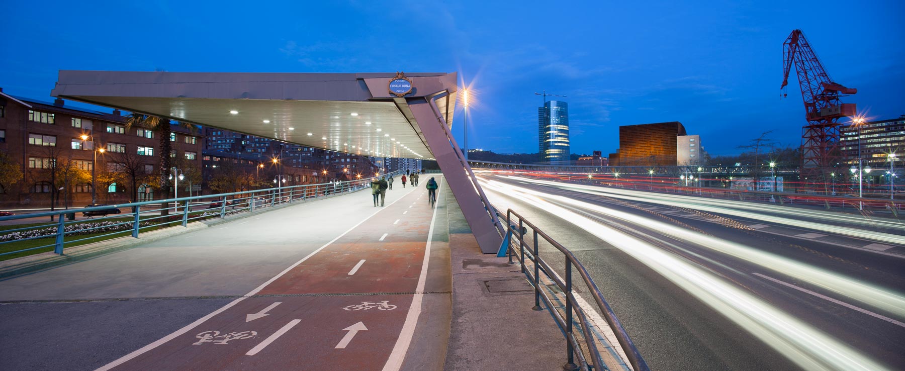Sujet: Pont et passerelle sur la rivière Nervion, abords du musée Guggenheim